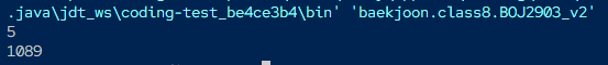 처음에 내가 작성한 식은 약수를 구하여 최소와 마지막 값을 제외한 값을 구하여 x에 저장하여 계산하는 방법이었다.