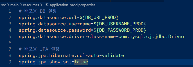 3) main/resources/application-prod.properties 설정
