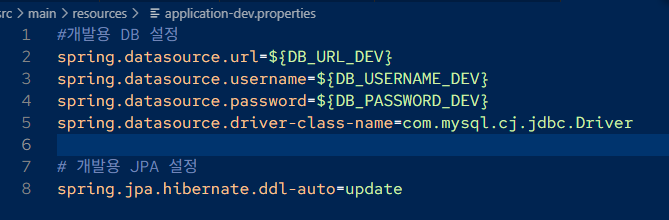 2) main/resources/application-dev.properties 설정