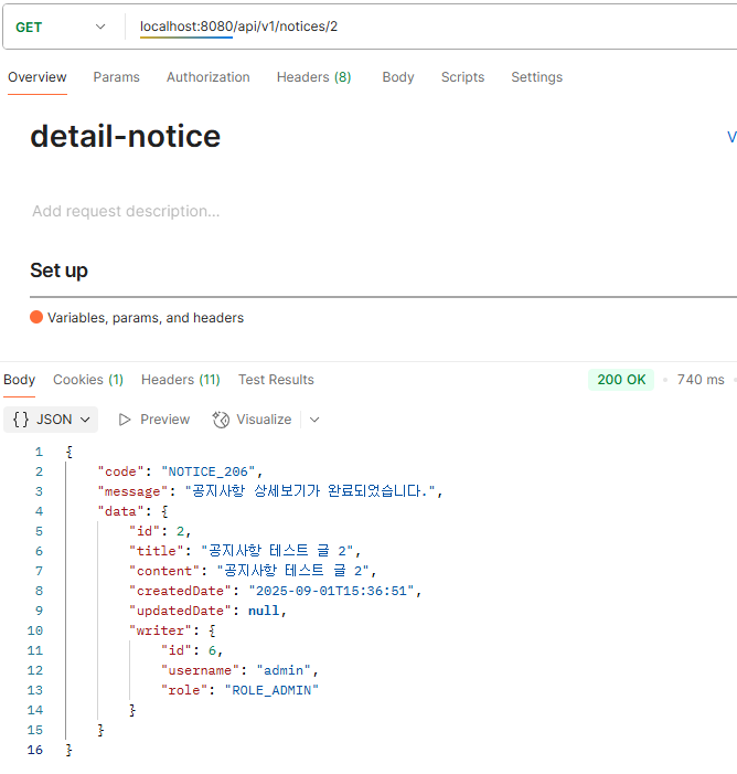 - GET 방식으로 `noticeId`를 @PathVariable로 전달받기.