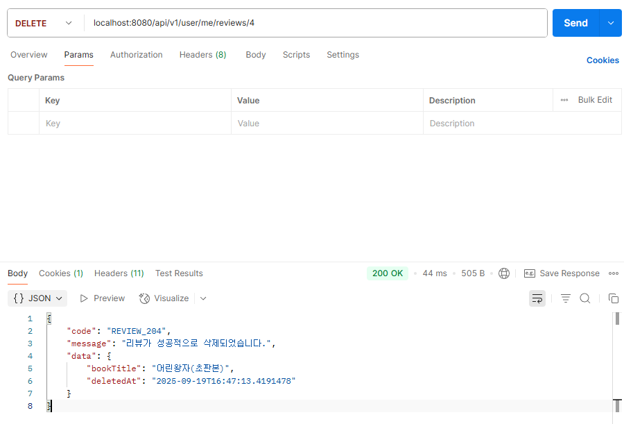 - 사용자 책 리뷰 삭제 성공 코드 정의
