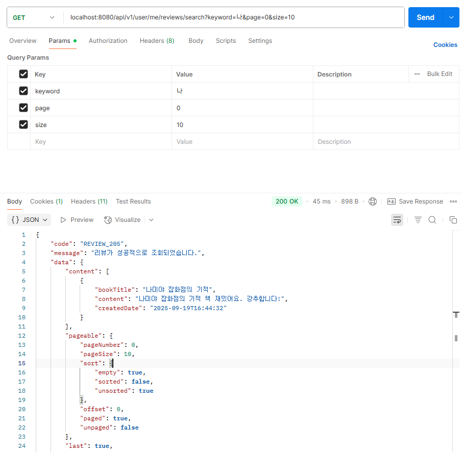 - 사용자 책 리뷰 검색 성공 코드 정의