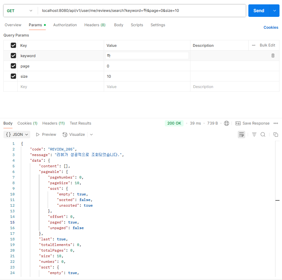 - GET /api/v1/user/me/reviews/search 로 요청을 합니다.