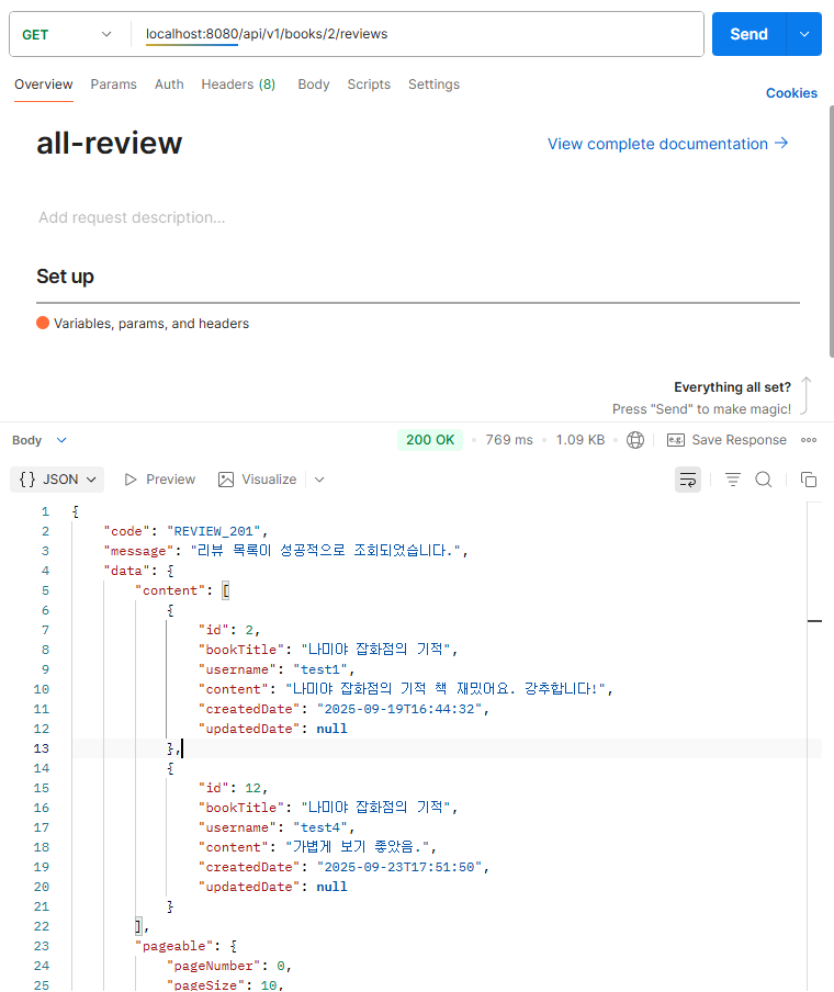 - GET /api/v1/books/{bookId}/reviews로 요청합니다