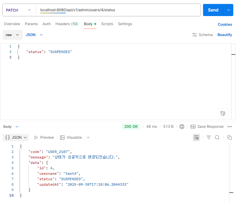 - PATCH /api/v1/admin/users/{userId}/status 로 요청