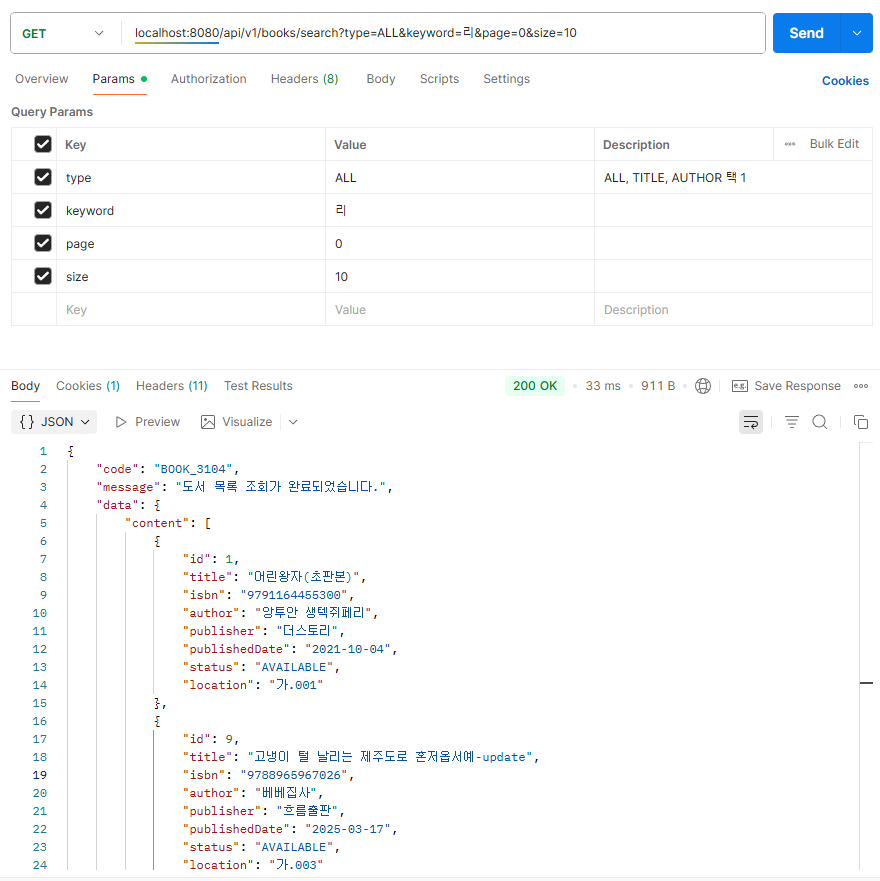 - 결과는 PageResponse<UserBookSearchResDTO> 형태로 저장.