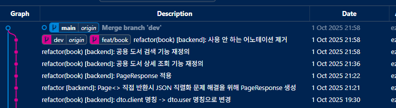 - Book을 <UserBookListResDTO>로 형변환 후 new PageResponse<>() 객체로 생성하여 Controller로 반환.