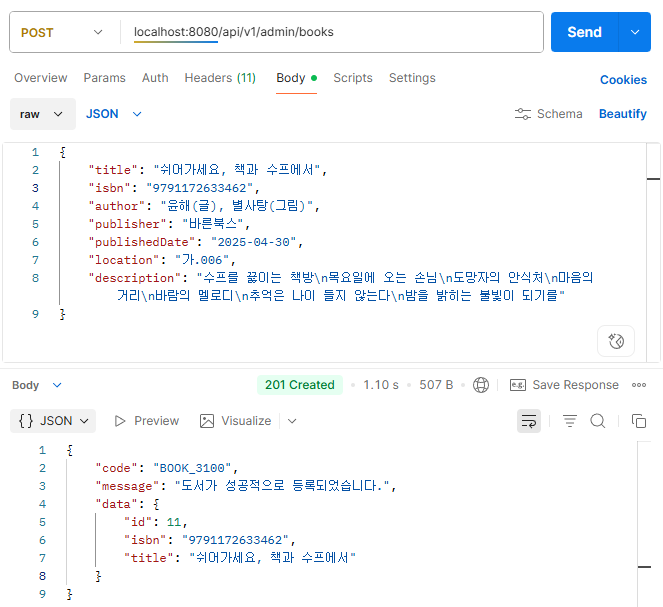 - POST /api/v1/admin/books 로 요청.