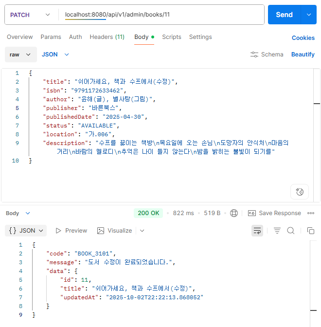 - PATCH /api/v1/admin/books/{bookId} 로 요청.