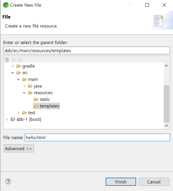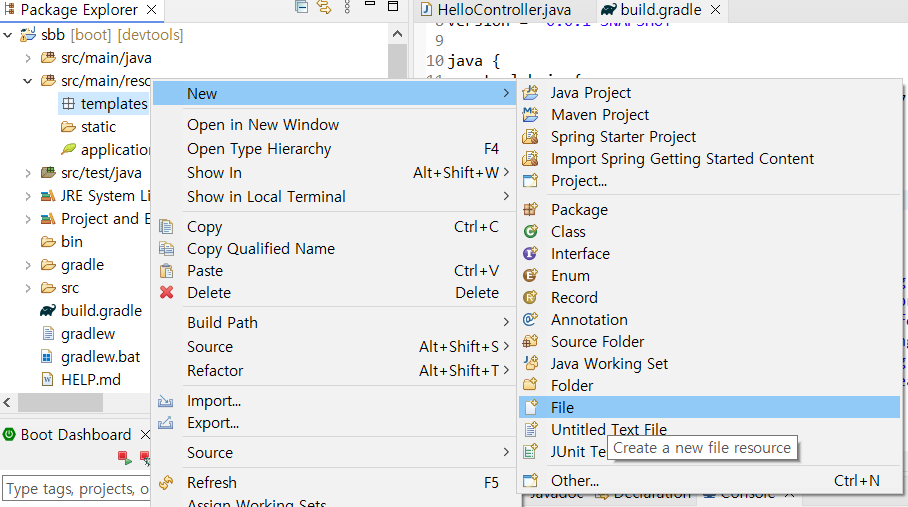 - src/main/resources > templates 마우스 우 클릭