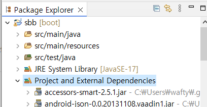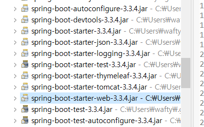 - 스크롤 내려보면 spring-boot-starter-web-3.3.4.jar 가 있으면 설치 된 거다.