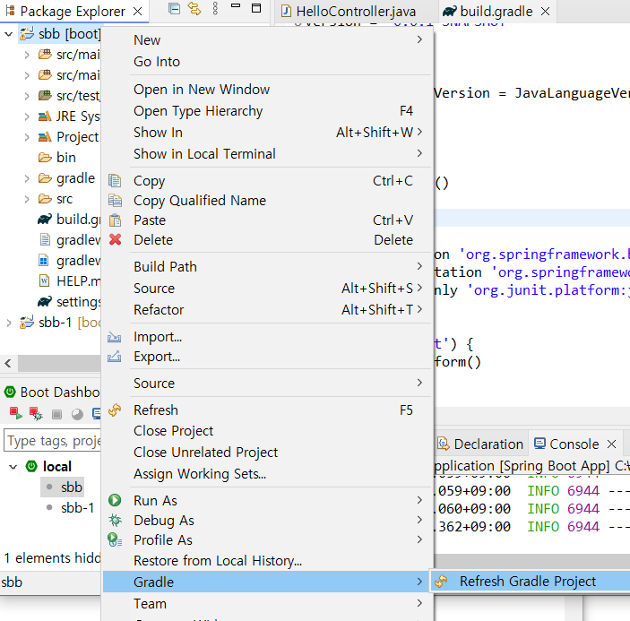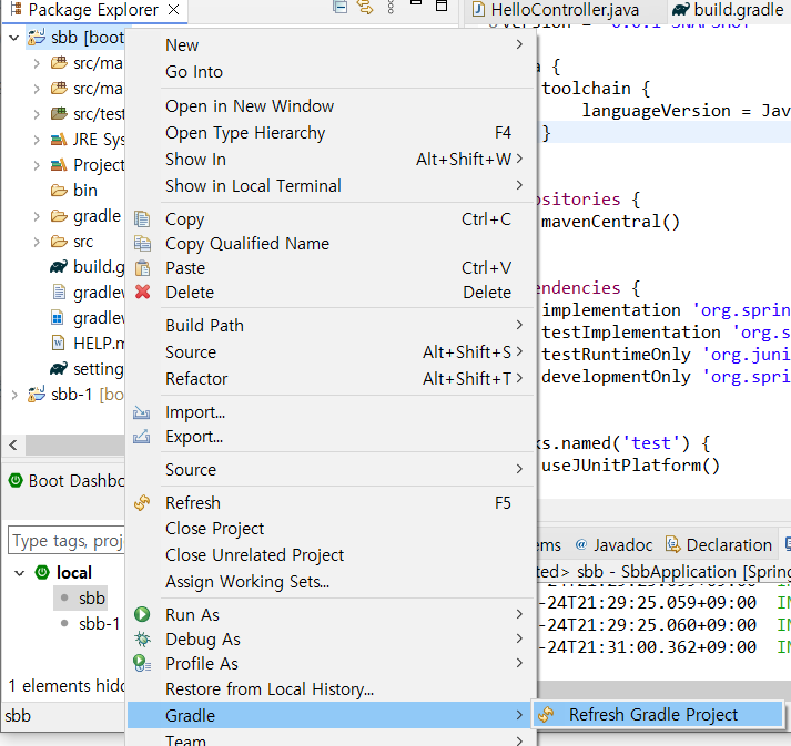 - sbb 프로젝트 클릭 후 마우스 우 클릭