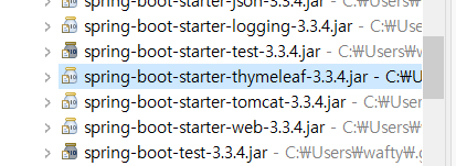 - 스크롤 내려보면 spring-boot-starter-thymeleaf-3.3.4.jar 가 있으면 설치 된 거다.