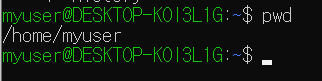 - pwd 명령어 입력 후 엔터하면 내 현재 위치가 나온다.