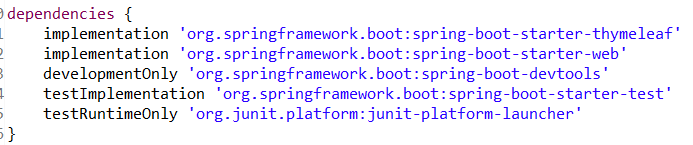 - implementation 'org.springframework.boot:spring-boot-starter-thymeleaf'