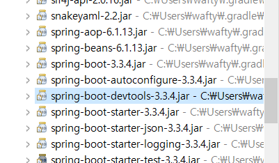 - 스크롤 내려보면 spring-boot-devtools-3.3.4.jar 가 있으면 설치 된 거다.