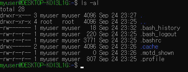 - ls -al 명령어 입력 후 엔터