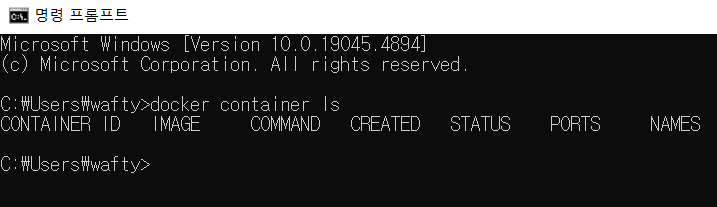 1. cmd 오픈 > docker container ls 명령어 입력 후 엔터