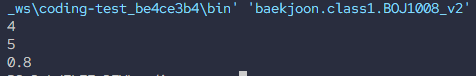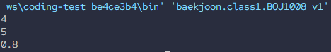 - 두 정수를 각각 A, B 변수에 저장을 한 다음 계산을 할 때 형변환을 float로 했는데 틀렸다.