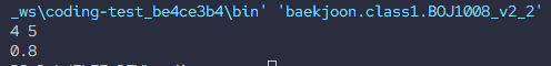 - 두 정수를 각각 A, B 변수에 저장을 한 다음 계산을 할 때 형변환을 float로 했는데 틀렸다.