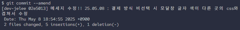 - commit 메세지가 잘못 되어서 수정하고 싶을 때 사용하는 명령어.