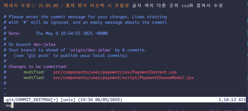 3. 메세지 부분 내용 수정 후 ESC 누르기.